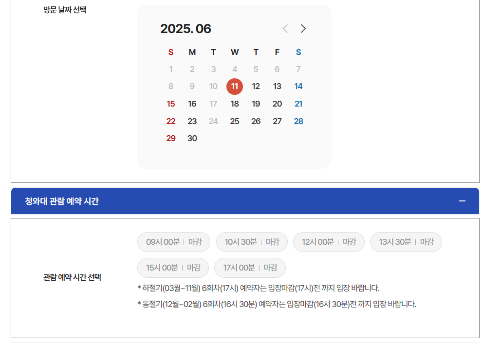 3. 청와대 관람 시간 및 운영 안내